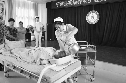 随着人口老龄化进程不断加快,失能老人养老护理难的问题日趋凸显。近日,宁津县养老护理员第一期培训班在宁津县中医院举行,医院的护理骨干现场进行了老年人护理的实操教学,包括胃管的护理操作、导尿管的护理操作、为失能老年人洗头等实用护理操作项目。 (张涛)