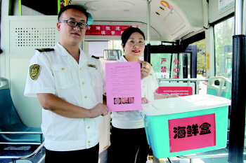 为了方便市民存放海鲜,9月4日,交运温馨巴士兴达分公司在途经各大市场的公交车上配备了海鲜盒,并打印了常见的海鲜蒸煮攻略,放置在报袋内,方便乘客取阅。像途经沙子口的611路,还配备了海鲜盒、海鲜桶以及挂钩、纸巾、便民袋等服务设施,供市民免费取用。