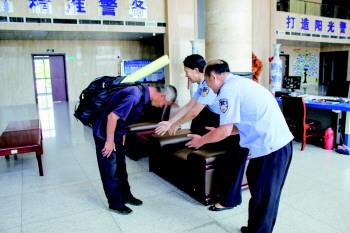 本报9月4日讯(记者 徐艳 通讯员 苏扬程) 8月27日,一位老人行程几千里,赶到五莲县公安局,将一面锦旗送到五莲县公安局民警手上,老人抹着眼泪说:“两年了,我终于见到恩人了,要不是你们就没有今天的我啊,我一定要给你们鞠一躬,把这把锦旗亲手交到你们手里”