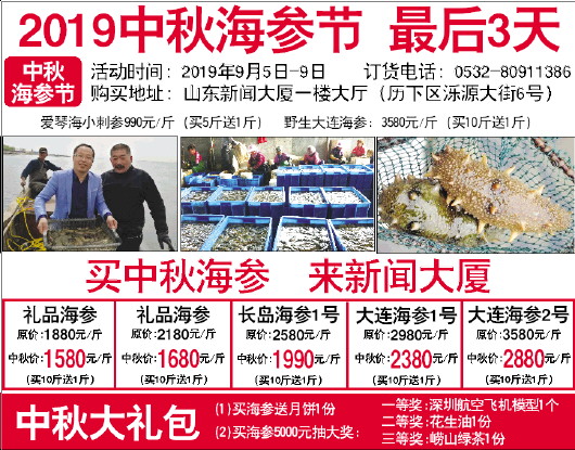 活动时间:2019年9月5日-9日 订货电话:0532-80911386