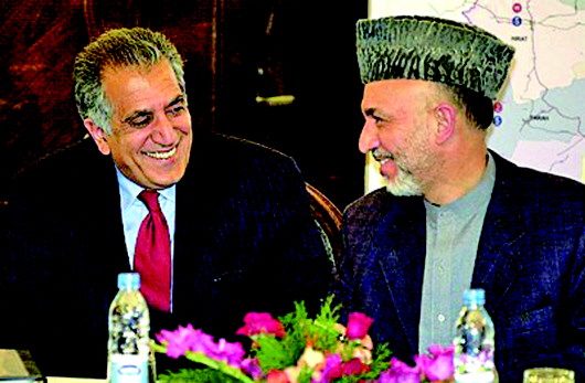 哈利勒扎德(左)与阿富汗前总统卡尔扎伊。