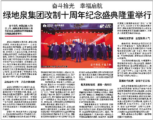 改制十年,绿地泉用持之以恒的奋斗、笃定推进的变革和守正传承的文化,实现了规模增长和经济效益的双丰收。绿地泉改制后累计经营收入超400亿元、上缴税金40亿元、利润总额30亿元、资产总额232.78亿元,实现齐鲁六城联动,为改制十周年交上了一份靓丽的成绩单。