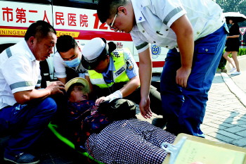 本报济宁9月10日讯(通讯员 牛文县 记者 孔茜) 5日15时许,在济宁新世纪广场商检岗,一老人驾驶无牌无证电动轿车将一老奶奶撞伤在地。在附近执勤的路管员董蕊带领队员第一时间赶到现场。路管员一边安抚受伤老太太,稳定其情绪,同时让队员拨打120报警电话。