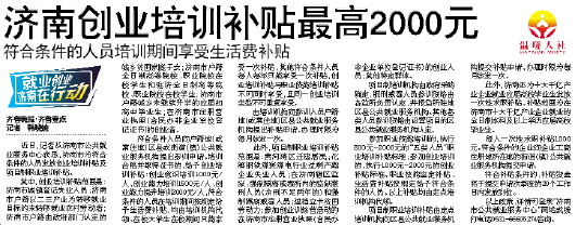 近日,记者从济南市公共就业服务中心获悉,济南市为符合条件的人员发放创业培训补贴及项目制职业培训补贴。