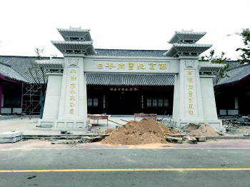 9月10日,记者来到位于太白湖景区南部的白衣尚书纪念馆施工现场时看到,整个工程已经进入收尾阶段,现场只有七八位工人正在做最后的调整。“目前正在进行的是细部找补,花砖、路缘石的铺设以及卫生清理工作。”负责该项目的山东福缘来装饰工程有限公司项目经理周东高说,纪念馆内部的陈设已经布置完成,正在对乳胶、油漆以及挂画等做二次调整,今年国庆期间将对公众开放。