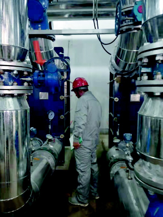 绿源地热能工作人员正在对供暖设备进行检修保养。