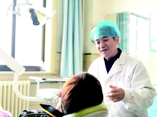 袁奎封主任正在向口腔疾病患者问诊
