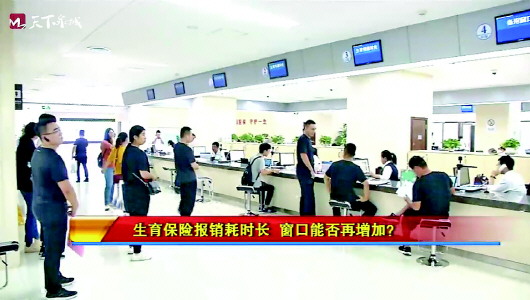 办理生育保险的窗口人比较多,每次去都得排队。视频截图