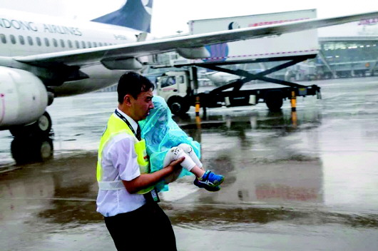 天气对航空公司来说永远都是一个避不开的话题,而韩显麟所在的服务单元,也感受着一年四季、春夏秋冬的变化。就在今年暑运期间,有一天济南机场下大雨,一架航班落地后韩显麟站在机坪上等待着旅客。“当时雨下的很大,舱门打开后我看到有个小女孩穿的凉鞋、短裤。”韩显麟看到后立马走过去跟乘务长要了一件一次性雨衣给小女孩穿上,之后韩显麟抱起女孩走进候机楼。“孩子穿得太少,如果被雨淋到可能会感冒。”韩显麟说他当时也没想太多,只是怕孩子淋雨感冒。