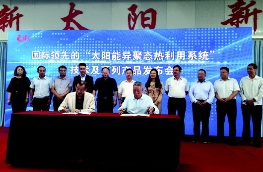 2019年9月26日,浙江柿子新能源科技有限公司联合山东泽能电力科技有限公司在山东召开新闻发布会,此次发布会是以节能环保、安全性能高、超低温运行、全年全天候等特点的高新技术产品——“太阳能异聚态热利用系统”为主题。目前“太阳能异聚态热利用系统”的技术研发成果已非常成熟,这一处于国际领先、国内高水平的成果可应用于60多个纵横领域;其中的太阳能建筑构件把能量体系作为建材成为建筑的源头,实现真正意义上的绿色建筑,打造“会呼吸的墙,有思想的房”。