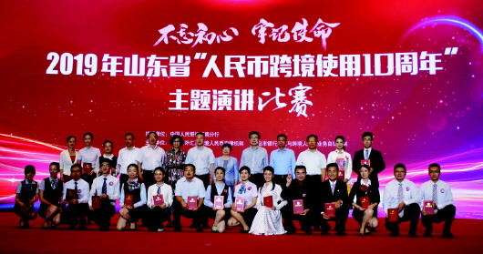 经过前期主题征文的选拔和评比,共有来自人民银行、商业银行和涉外企业的17家参赛单位进入现场演讲比赛环节。比赛现场,20位选手以饱满的状态、真实的事例和诚挚的情感,回忆和讲述了十年来跨境人民币业务的发展历程,呈现了跨境人民币业务在服务实体经济方面发挥的重要作用。整场演讲,选手声情并茂、精彩迭出,富有感染力的精彩表现打动了评委和在场的观众,博得阵阵掌声。经过两个多小时的角逐,根据选手比赛成绩,中国银行山东省分行、阳谷祥光铜业有限公司、中国农业银行青岛分行、齐鲁银行6人获得一等奖,人民银行济南分行、中国银行青岛分行等7家机构8人获得二等奖,人行威海市中心支行等6家机构6人获得三等奖。此次演讲比赛进一步扩大了跨境人民币政策的社会影响力,有效激发了广大跨境人民币干部职工的“担当作为”精神,必将为加快跨境人民币业务发展、提升金融服务实体经济质效提供强有力的支撑。