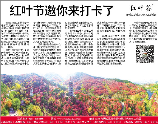 联系电话:0531-82818666 网站:www.hongyegu.com.cn 地址:济南市历城区仲宫镇锦绣川水库南三公里
