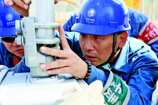 ▼济南供电公司工作人员全神贯注精心检修电网设备。 王伟建 摄