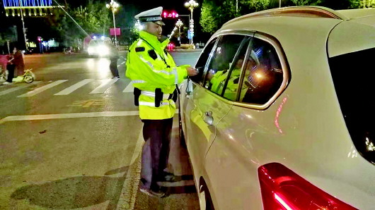 城区中队民警加大夜间道路巡逻管控力度,择点开展酒驾整治,强化对大货车、渣土车重点车辆管控力度,有效净化夜间道路交通环境,为服务夜经济保驾护航。 通讯员 郭嵩 摄