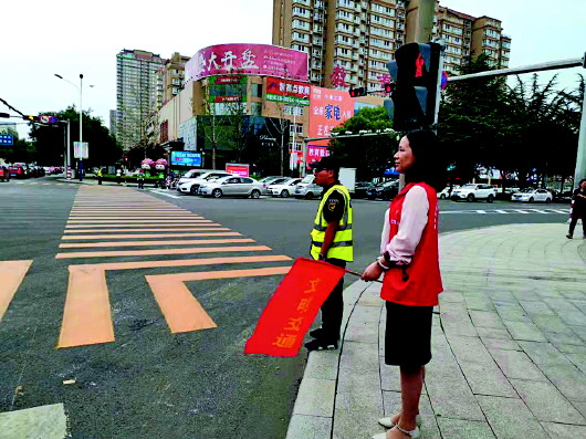 本报9月26日讯(记者 亓玉飞 通讯员 李娟) 为进一步弘扬志愿服务精神,倡导市民文明出行,9月12日,莱芜区中小企业服务中心的交通志愿者们,穿上了红色马甲,一人一面志愿者旗帜,在馨百商厦路口,协助交通警察,开展文明交通志愿服务活动。
