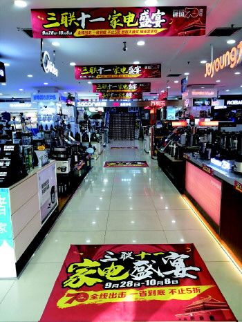 据三联家电青年路店王店长介绍,近日青年路店正积极筹备此次活动,店内外装饰一新,洋溢着节日的氛围。据王店长介绍,烟台老百姓十一买家电看三联,因为三联家电深耕烟台多年,而且每逢重大节日优惠多多。据了解,活动期间有以下几重大礼回馈消费者:9月30日黄金夜市预存10元十倍翻送88元礼品!抽金条大奖!10月1日—10月4日每天11:00、16:00整点抽冷柜!10月7日回报大抽奖,上午11:00新老顾客凭发票抽全套家电(开发区、青年路下午4点)!购指定品类最高返500现金券,全场通用!活动期间套购送豪礼!全城比价,买贵退差价!