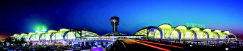 青岛流亭国际机场航站楼夜景。