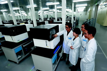 华大基因科研人员在实验室进行基因检测工作。