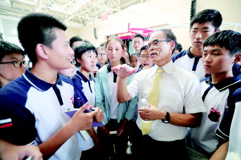 与诺奖得主中村修二面对面交流。作为九中学子的独享福利,学校已邀请6位诺奖大师进校园。