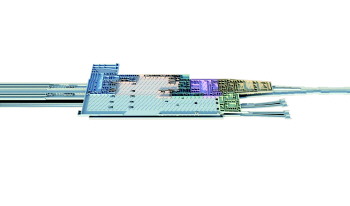 不仅如此,每根立柱对应的转换梁下面还有两根钢结构柱共同分担压力,三者共同组成了一张“板凳”,牢牢地托着上面的混凝土立柱。“两根钢结构柱比上面的混凝土柱更粗,直径达到2.2米,立柱直插基坑底部,从而使得来自航站楼部分立柱的重量得到层层均匀分散。”焦雷表示,项目部充分考虑到双结构柱承重较大,所以采用了国内罕见的C60自密实混凝土进行立柱浇筑以增加其自身承重性。值得指出的是,项目部在航站楼立柱与转换梁间还设置了先进的减震系统,通过安装弹簧减震支座,以减少高铁、地铁下穿青岛新机场航站楼时所带来的震动,进一步提升了乘客在航站楼候机时的舒适性。据了解,弹簧减震支座较多应用于桥梁、发电机基础底座等动荷载的减震,而机场航站楼采用弹簧减震支座设计在国内尚属首次。