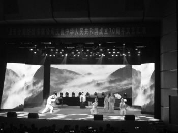 9月25日19点30分,山东公用控股有限公司举行文艺汇演。汇演在一首乐器合奏《我的祖国》中拉开序幕,随后是小合唱《游击队之歌》,歌曲串烧、音乐快板、纪实诵演剧、小品……演出通过多样的表演形式赢得了观众的阵阵掌声。 齐鲁晚报·齐鲁壹点 见习记者 魏声远 通讯员 赵洋 摄
