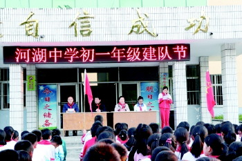 新生少先队建队 近日,沂源县河湖中学组织了初一新生少先队建队仪式。初一新生少先队正式成立,学生们将以热情饱满的姿态面对今后的学习和生活。(王克斌)
