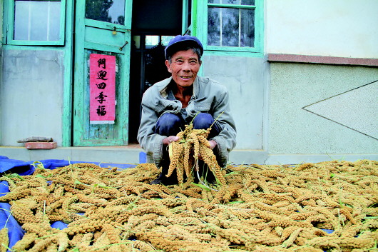 不知从何时起,下涝坡村有了种小米的传统,得益于天时地利,下涝坡村产的谷子质量为周边最优。近年来,辉渠镇精心培育“望海山小米”农产品品牌,让辉渠小米走进千家万户。因公认的高品质,下涝坡村的小米价格总体要比其他村的小米高。赵福随告诉记者,他家不脱壳的谷子每斤就能卖四块五,碾成小米每斤最便宜也得七块五,这还是在村里卖,如果被人收走在外边卖,一斤至少得十块钱。