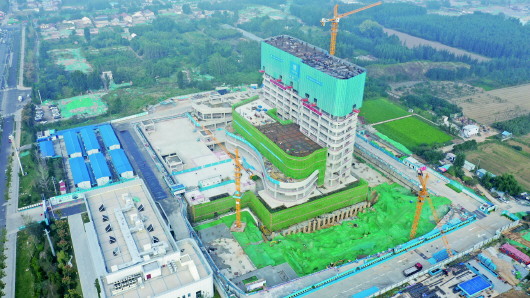 济南国际医学科学中心最近又有了新进展。由中建一局履约的山东省肿瘤医院质子临床研究中心项目正紧张建设,该项目内作为医学中心形象窗口的医疗健康技术推广中心已经投入使用,21层的医疗综合楼预计11月封顶。2021年下半年,即有望利用国际尖端的质子技术诊治首例肿瘤患者。