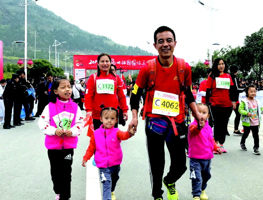 2019枣庄冠世榴园国际马拉松上,最小的跑友是一对三岁的双胞胎,她们跟家人一起体验马拉松带来的欢乐。 齐鲁晚报·齐鲁壹点记者 陈文进 摄