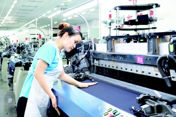 如意集团织布车间内工作人员正在紧张忙碌。