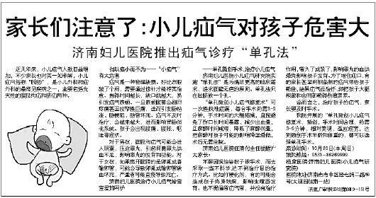 指定医院:济南妇儿医院(小儿疝气研究院)