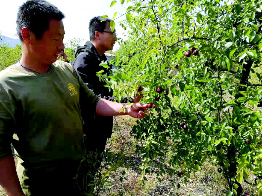 马山镇中义合村村委会主任孟伟说,林军承包的这片枣林,品种叫“仲秋红”蒸食大枣。“这是一个新型品种,我们从济阳引种了树苗。这也是镇里的扶贫项目,我们是市级贫困村,在政府扶贫办支持下,2015年村里拿出了这六十余亩山坡地,种植了三千余棵这种枣树。”根据孟伟的说法,这是长清区最大面积的枣树林了,枣树生长良好,去年开始挂果,今年起开始逐渐进入丰果期。根据枣树的特点,随后的盛果期将持续十余年。