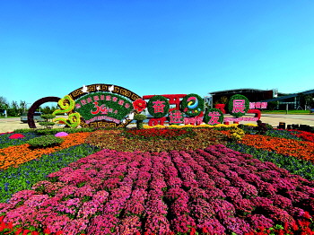 16日,在日照市太阳广场上,园林工人们正忙着摆放鲜花造型,红彤彤的一串红、金灿灿的小金菊……在阳光的照射下绚丽夺目。主造型上写着“新时代、新活力、新日照”的字样,吸引了不少市民驻足观看。据悉,18日上午,日照市将举办庆祝建市30周年发展大会,美丽的海滨城市日照将迎来四面八方的客人见证成长共话发展。