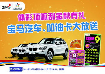 2019年10月18日00:00至11月7日24:00,购彩者在我省行政区域内购买“顶呱刮”纸质即开型彩票20元“炫酷9”或5元“好运8”游戏,中得任意奖级且通过销售网点终端兑奖设备(IVT或BCR)完成兑奖操作后,即可参与抽奖送宝马X1汽车活动。全省共进行3次抽奖,抽奖时间分别为:10月25日、11月1日、11月8日,每次抽奖送出2辆宝马汽车,共计送出6辆汽车。