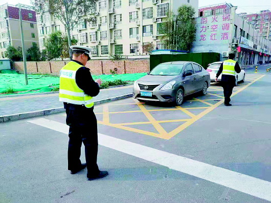 ◥济阳交警对乱停乱放进行严查严管。