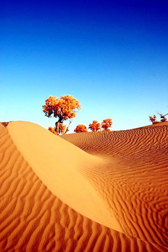 它不孤独。有的一棵棵挺立在绿洲之上,同气连枝,成片成行;有的一簇簇匍匐在大漠戈壁,星罗棋布,展示行装。即使在无尽的苍茫中见不到秋天的影子,也会嗅到它随风而来的遥远的清香。