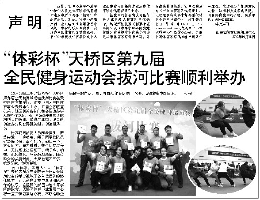 公益体彩,乐善人生。“体彩杯”天桥区第九届全民健身运动会拔河比赛的举办锻炼了各单位团队的协作能力,让大家在比赛中享受团队合作的快乐,在轻松的氛围中增进同事间的默契。天桥区体育事业发展中心将一直秉持着廉洁办赛,不断推动全民健身的广泛开展,将群众体育落到实处,促进健康中国建设。 (小荷)