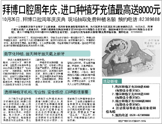 10月26日,拜博口腔周年庆庆典 现场抽取免费种植名额 预约电话:82389888