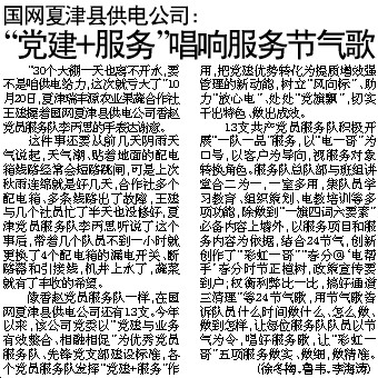 像香赵党员服务队一样,在国网夏津县供电公司还有13支。今年以来,该公司党委以“党建与业务有效整合、相融相促”为优秀党员服务队、先锋党支部建设标准,各个党员服务队发挥“党建+服务”作用,把党建优势转化为提质增效强管理的新动能,树立“风向标”、助力“放心电”、处处“党旗飘”,切实干出特色、做出成效。