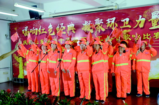 10月20日晚7点,环卫中心举办了“红歌颂”歌咏比赛,《我和我的祖国》《站在草原望北京》、《红星照我去战斗》《我的中国心》等红色经典歌曲久久回荡。参赛职工着装整齐、饱含激情,他们通过合唱、独唱、舞蹈等形式,用激昂嘹亮的歌声,如火一样的热情表达了对党和祖国的热爱。