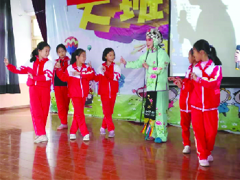 传统艺术进校园 近日,淄博市五音戏剧院3名演员,走进沂源县新城路小学,开展了“传统艺术进校园”活动,让小学生近距离感受戏曲的魅力,推进了“非遗”的传播。 (周从容 李志凤)