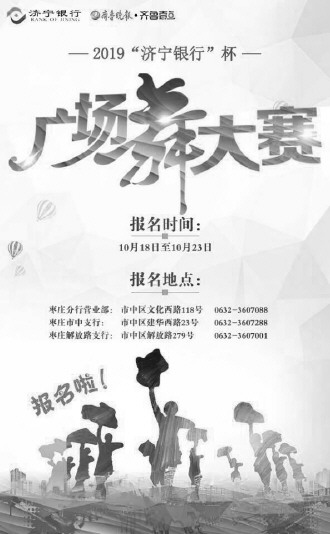 本报10月24日讯(记者 韩微) 为展现枣庄市民新时代美好生活面貌,近日,由齐鲁晚报·齐鲁壹点、济宁银行主办的——2019“济宁银行”杯广场舞大赛开始报名阶段,据最新报名数据显示,现今报名队伍已经有35支,大赛未开始,火热程度已经显然。