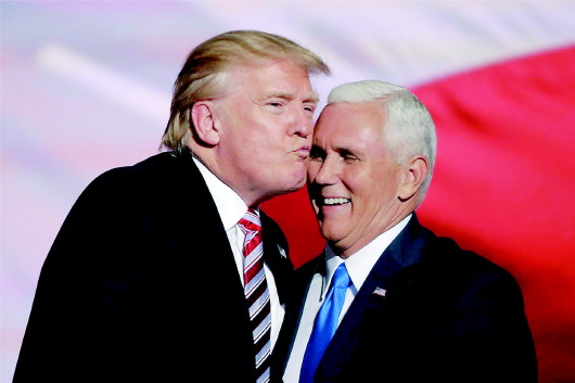 2016年竞选期间,特朗普(左)与彭斯同台拉票。(资料片)