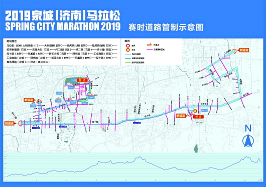 恒丰银行2019泉城(济南)马拉松赛时道路管制示意图。