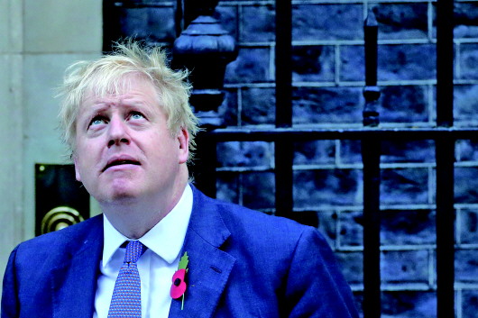 10月28日,在英国伦敦,英国首相约翰逊在唐宁街10号首相府外出席活动。 新华/法新