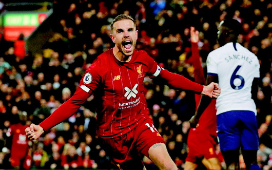 ◥利物浦队长亨德森为球队立下汗马功劳。 新华社发