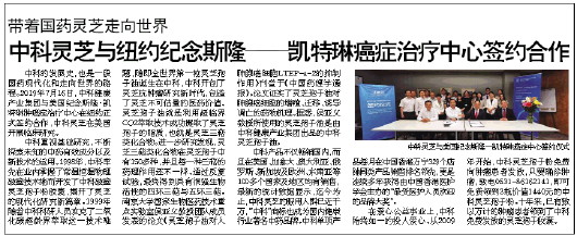 中科灵芝与纽约纪念斯隆——凯特琳癌症治疗中心签约合作