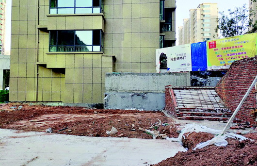 由于楼前楼后地面存在落差,单元门入口建在了负一层,临沭县史丹利·河东岸楼盘的业主要想到楼前广场活动需要“登高”。