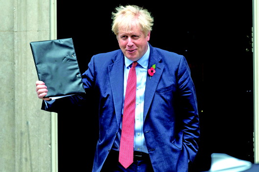 10月29日,英国首相约翰逊离开伦敦唐宁街10号首相府。 新华社发
