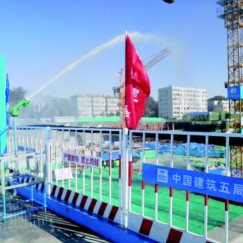 10月30日,在位于李沧区沔阳路的越秀天悦海湾项目的全市千余建筑工地施工现场扬尘防控观摩会主会场,记者看到,从工地的围墙开始就有喷雾降尘设备,进入工地更是长枪短炮除尘降尘各种设施,施工单位中国建筑第五工程局有限公司项目经理赵永争介绍,以前工地降尘主要用洗车机、喷淋和雾炮等老三件,效果不理想,今年以来工地上增加了很多高科技的新设备。比如可以覆盖7000多平方米的高压远程喷雾系统;能去除2.5微米以上的粉尘颗粒的新型裸土覆盖固尘剂;带吸尘装置的自动吸尘式锚杆钻机……